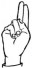 На ћирилици написано АРСЕНИЈЕ АРКУЛА састоји се из 14 слова [?]. Исписано ћириличном једноручном азбуком за глувонеме: